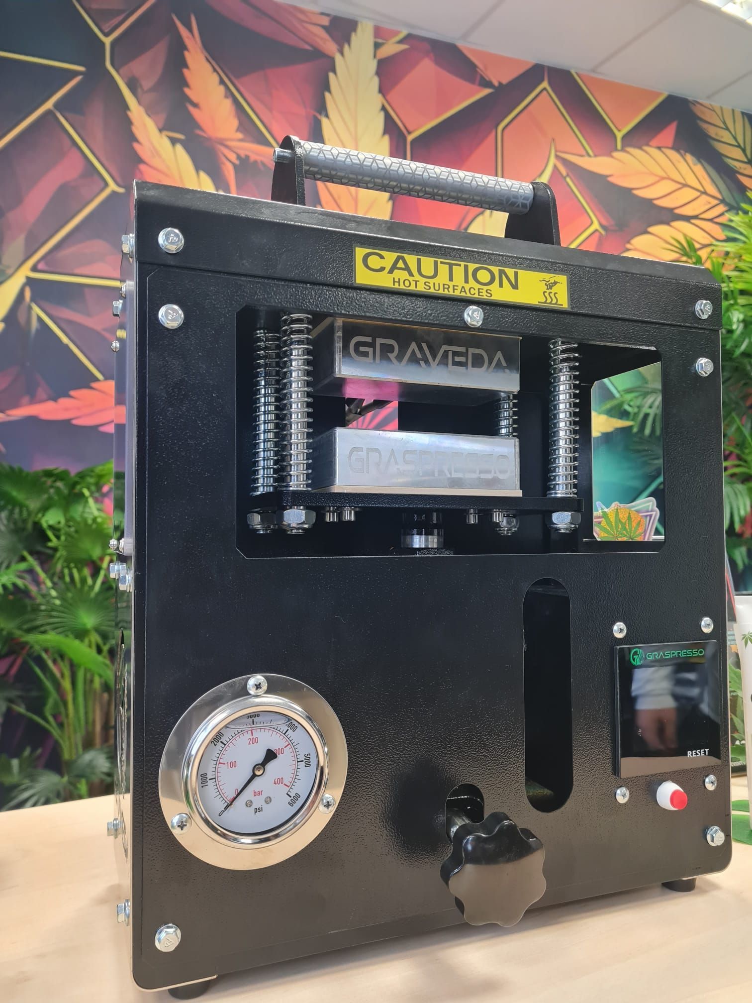 Ab sofort machen wir euch anständig Druck - nämlich ganze 7-Tonnen! Mit der GRAVEDA Graspresso ! Press-Service ab sofort live vor Ort: Euren eigenen Honig live beim entstehen zusehen & im edlen Glas fertig mit nach Hause nehmen | 20,-€ je Pressung Passendes Zubehör gesucht? >>> teste PuffCo, Stundenglas & Co.